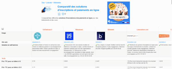 Comparatif des différentes solutions d’inscriptions et de paiements en ligne pour des événements et des cours. + + Signaler Inclure…